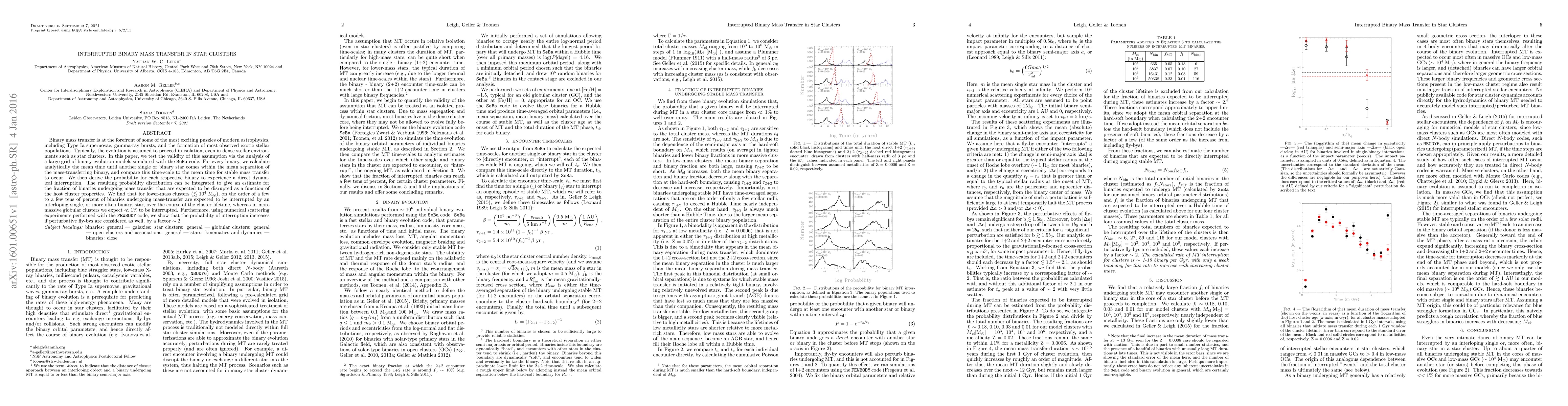 This paper investigates the impact of binary mass transfer interruptions in star clusters, finding that lower-mass clusters may see a few to tens of percent of mass-transferring binaries interrupted by interloping stars, while more massive clusters experience much lower rates. Numerical experiments suggest that perturbative fly-bys further increase the interruption probability by a factor of approximately 2.