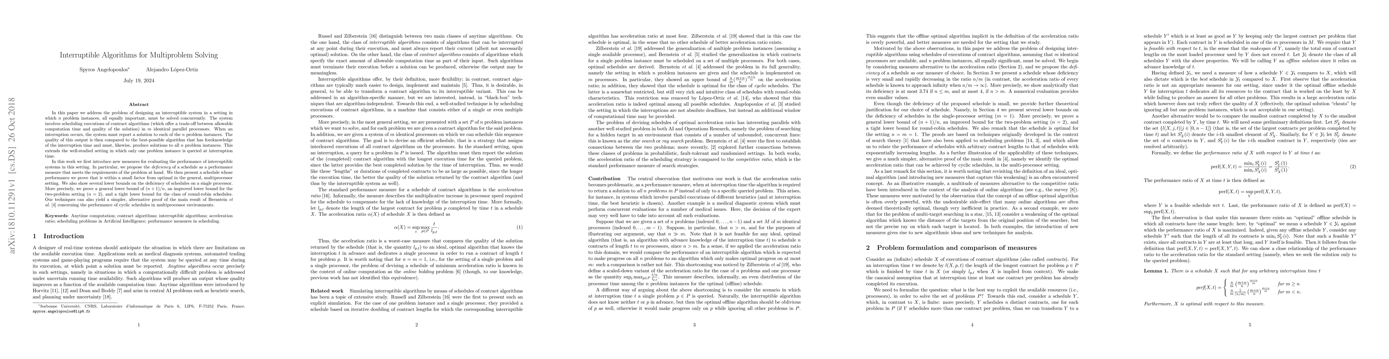 Researchers designed a system to solve multiple problems concurrently, with an interruptible algorithm that can provide solutions within a small factor of optimality. They also established lower bounds for the efficiency of such systems in various settings.