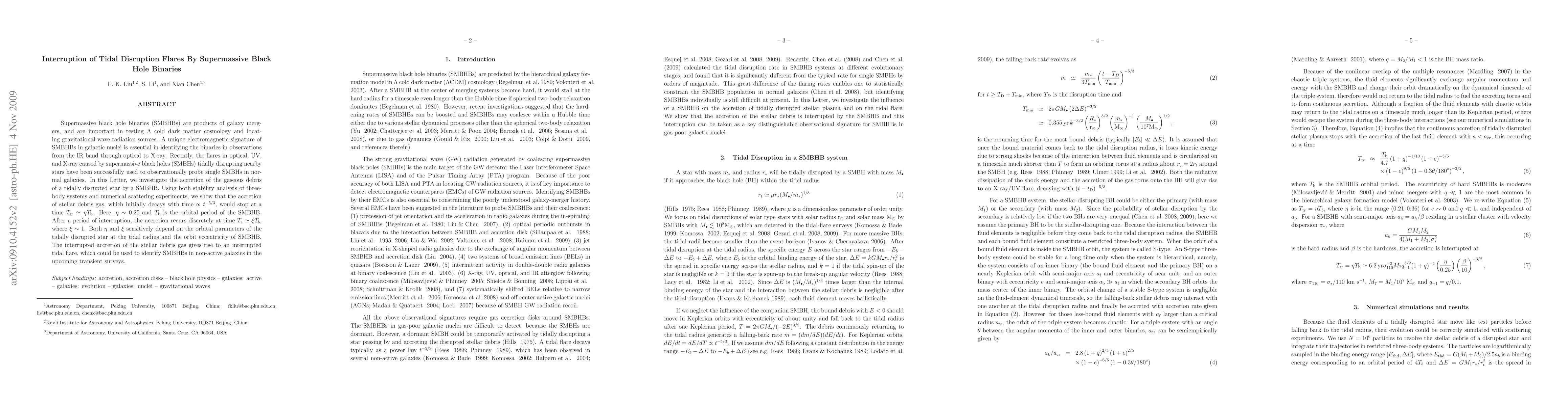 This paper investigates how supermassive black hole binaries (SMBHBs) can interrupt and subsequently recur in the accretion of stellar debris gas from tidally disrupted stars, leading to interrupted tidal disruption flares. The study uses stability analysis and numerical experiments to show that the accretion process is periodically interrupted and recurs, potentially aiding in identifying SMBHBs in non-active galaxies through transient surveys.