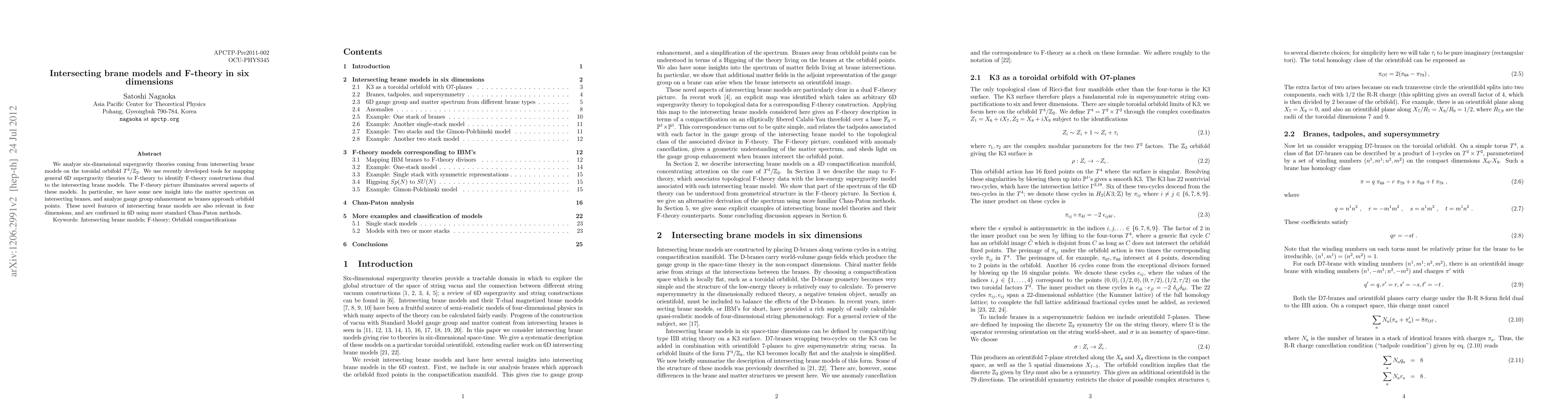We analyze six-dimensional supergravity theories coming from intersecting brane models on the toroidal orbifold T^4/Z_2. We use recently developed tools for mapping general 6D supergravity theories to F-theory to identify F-theory constructions dual to the intersecting brane models. The F-theory picture illuminates several aspects of these models. In particular, we have some new insight into the matter spectrum on intersecting branes, and analyze gauge group enhancement as branes approach orbifold points. These novel features of intersecting brane models are also relevant in four dimensions, and are confirmed in 6D using more standard Chan-Paton methods.