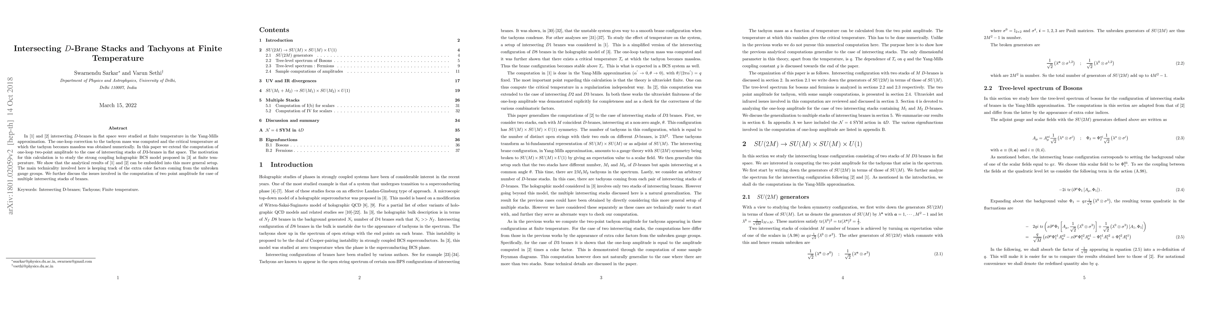 This paper extends the study of intersecting $D$-brane stacks at finite temperature, focusing on the one-loop correction to the tachyon mass. It aims to incorporate the results into a broader setup, specifically the strong coupling holographic BCS model, while addressing technical complexities related to color factors and multiple intersecting brane configurations.