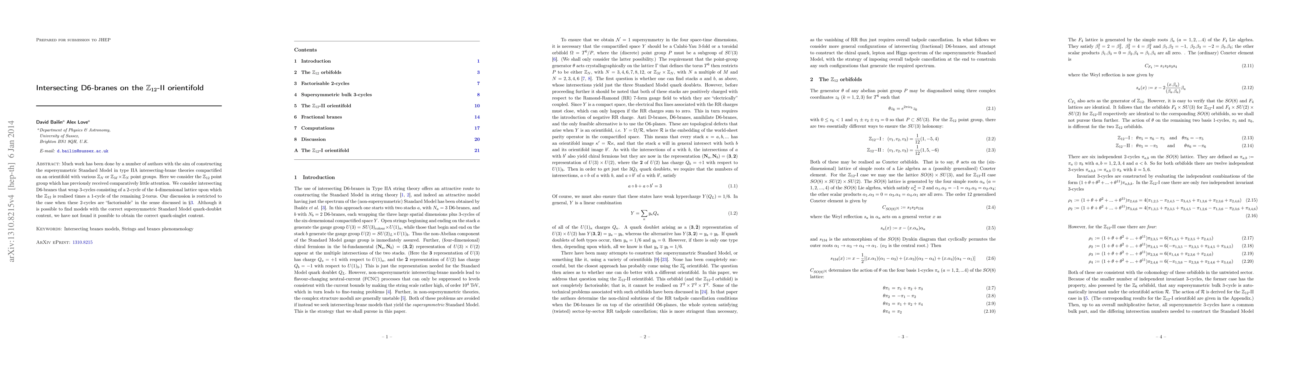 This paper explores the Z_{12} point group in type IIA intersecting-brane theories compactified on an orientifold, focusing on D6-branes wrapping specific 3-cycles. Despite finding models with the right quark-doublet content for the supersymmetric Standard Model, the correct quark-singlet content was not attainable.