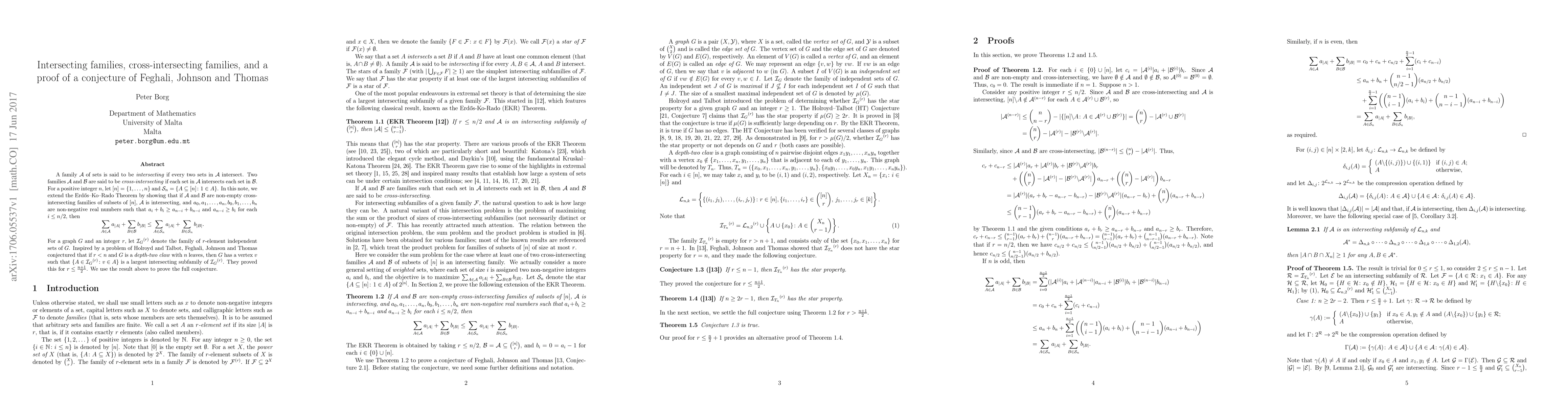 A family $\mathcal{A}$ of sets is said to be intersecting if every two sets in $\mathcal{A}$ intersect. Two families $\mathcal{A}$ and $\mathcal{B}$ are said to be cross-intersecting if each set in $\mathcal{A}$ intersects each set in $\mathcal{B}$. For a positive integer $n$, let $[n] = \{1, \dots, n\}$ and $\mathcal{S}_n = \{A \subseteq [n] \colon 1 \in A\}$. In this note, we extend the Erd\H{o}s-Ko-Rado Theorem by showing that if $\mathcal{A}$ and $\mathcal{B}$ are non-empty cross-intersecting families of subsets of $[n]$, $\mathcal{A}$ is intersecting, and $a_0, a_1, \dots, a_n, b_0, b_1, \dots, b_n$ are non-negative real numbers such that $a_i + b_i \geq a_{n-i} + b_{n-i}$ and $a_{n-i} \geq b_i$ for each $i \leq n/2$, then \[\sum_{A \in \mathcal{A}} a_{|A|} + \sum_{B \in \mathcal{B}} b_{|B|} \leq \sum_{A \in \mathcal{S}_n} a_{|A|} + \sum_{B \in \mathcal{S}_n} b_{|B|}.\] For a graph $G$ and an integer $r$, let ${\mathcal{I}_G}^{(r)}$ denote the family of $r$-element independent sets of $G$. Inspired by a problem of Holroyd and Talbot, Feghali, Johnson and Thomas conjectured that if $r < n$ and $G$ is a depth-two claw with $n$ leaves, then $G$ has a vertex $v$ such that $\{A \in {\mathcal{I}_G}^{(r)} \colon v \in A\}$ is a largest intersecting subfamily of ${\mathcal{I}_G}^{(r)}$. They proved this for $r \leq \frac{n+1}{2}$. We use the result above to prove the full conjecture.
