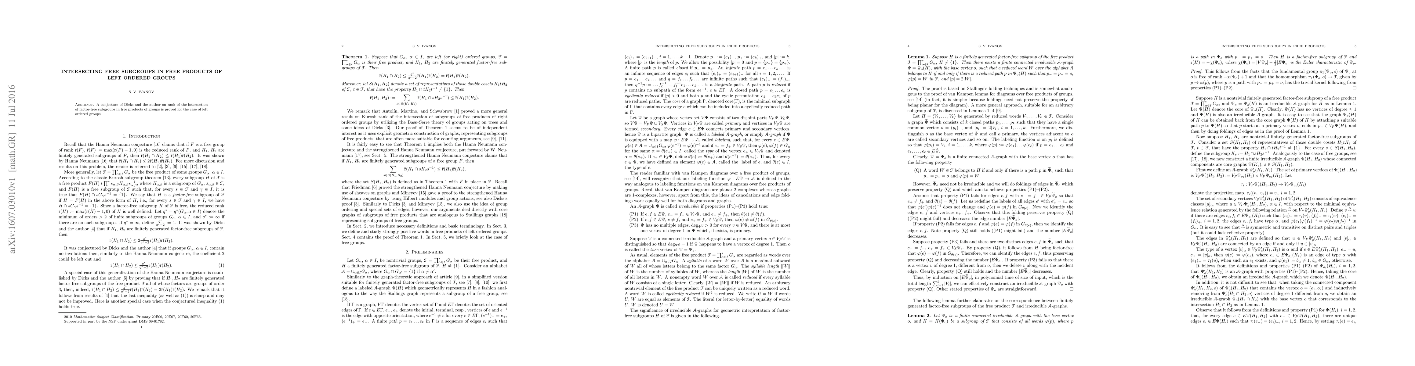 This paper proves a conjecture concerning the rank of intersections of factor-free subgroups in free products of left ordered groups, addressing the complexity of subgroup interactions in such algebraic structures. The result extends understanding of these intersections' behavior within the specific context of left ordered groups.