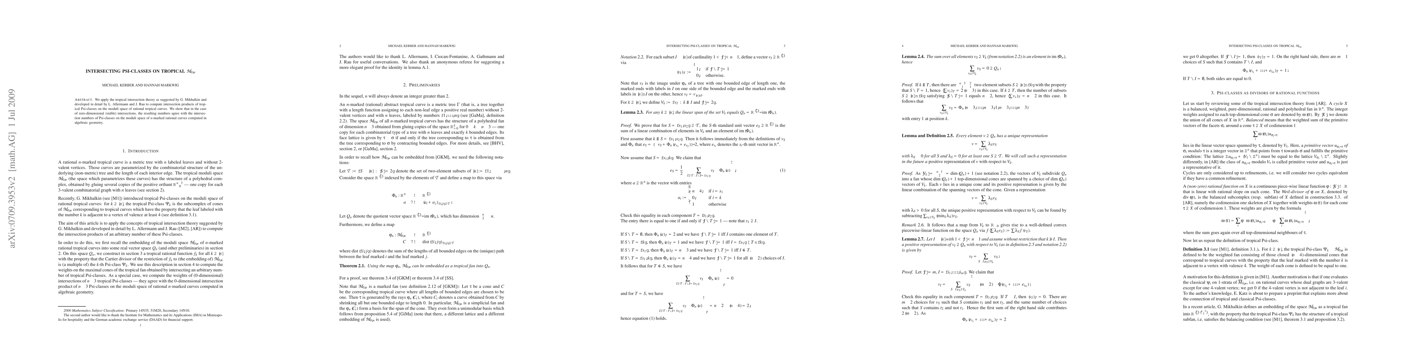 The paper computes intersection products of tropical Psi-classes on the moduli space of rational tropical curves using tropical intersection theory, showing agreement with algebraic geometry intersection numbers for zero-dimensional intersections.
