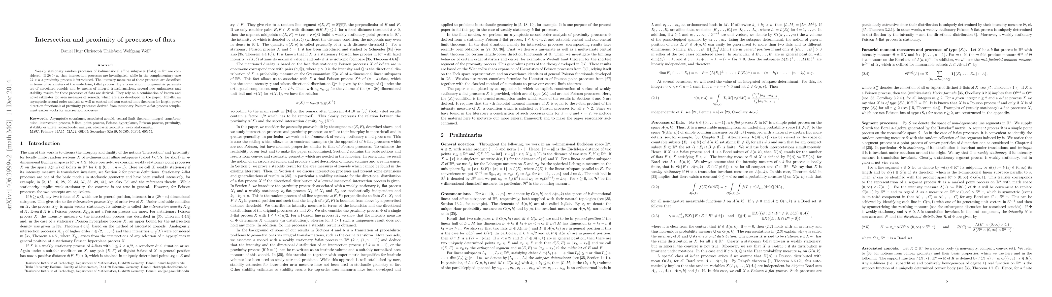 This paper investigates weakly stationary random processes of $k$-dimensional affine subspaces (flats) in $\mathbb{R}^n$, focusing on intersection processes when $2k \geq n$ and introducing proximity processes when $2k < n$. It derives new uniqueness and stability results using geometric parameters and integral transformations.
