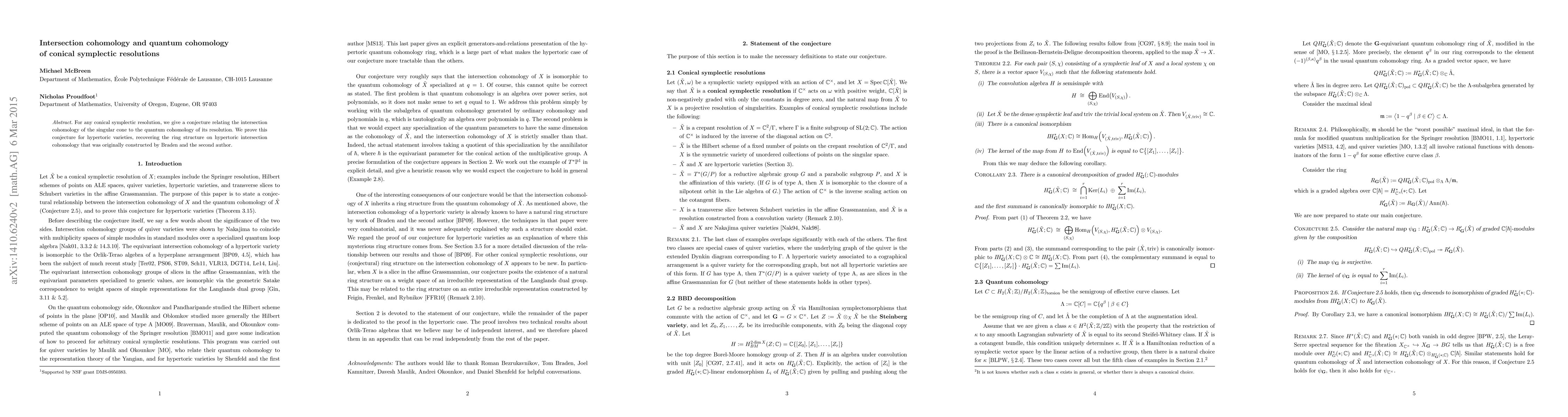 Summary: This paper proposes a conjecture linking the intersection cohomology of a singular cone to the quantum cohomology of its conical symplectic resolution. The conjecture is proven for hypertoric varieties, validating the established ring structure in hypertoric intersection cohomology.