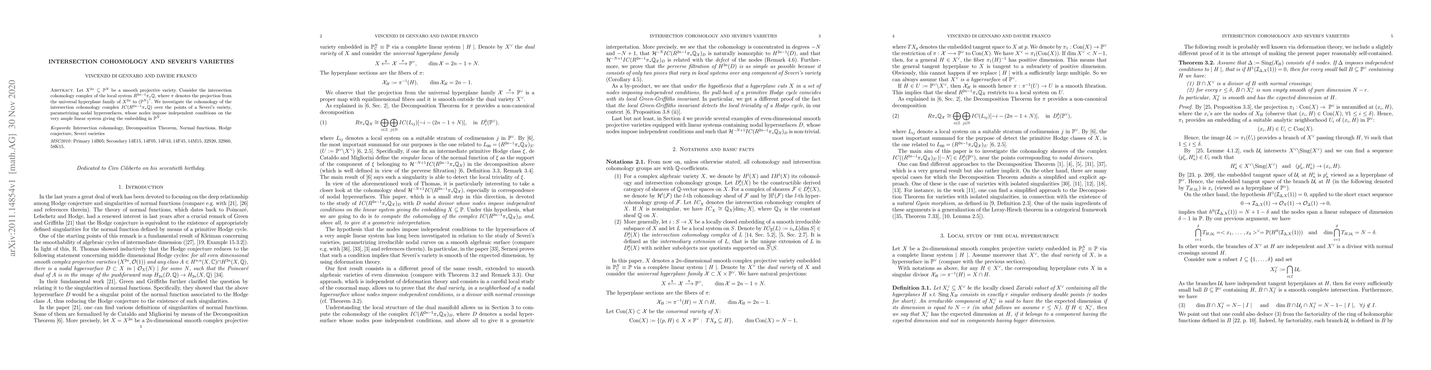 The research introduced a new approach to studying Severi's varieties using intersection cohomology.