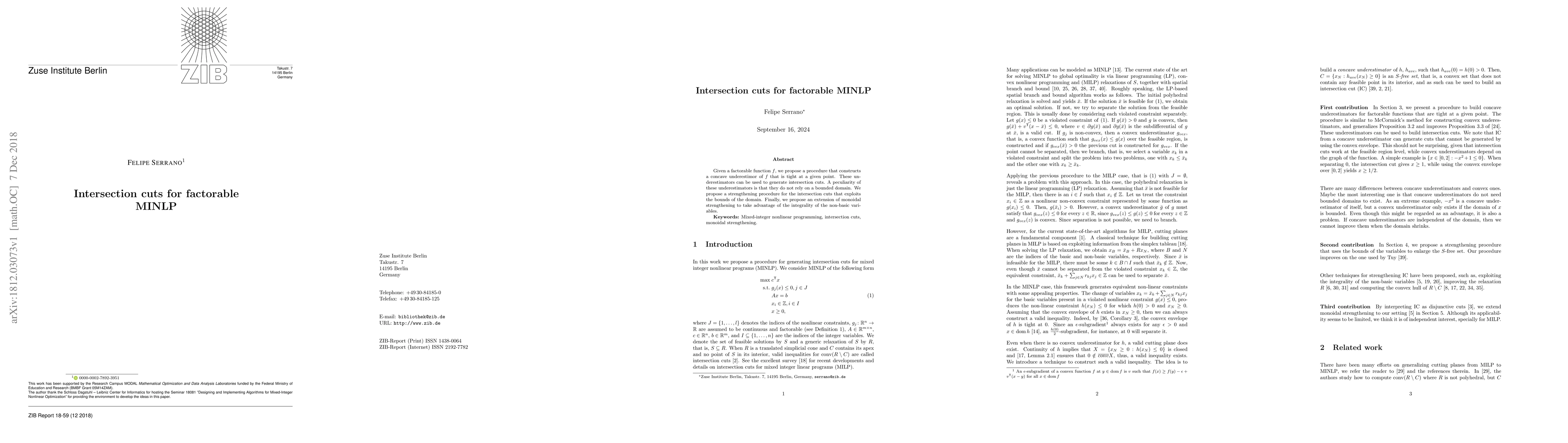 Researchers propose a method to create tight concave underestimators for factorable MINLP functions, enabling the generation of intersection cuts without relying on domain bounds. This approach enhances existing strengthening procedures for better optimization results.