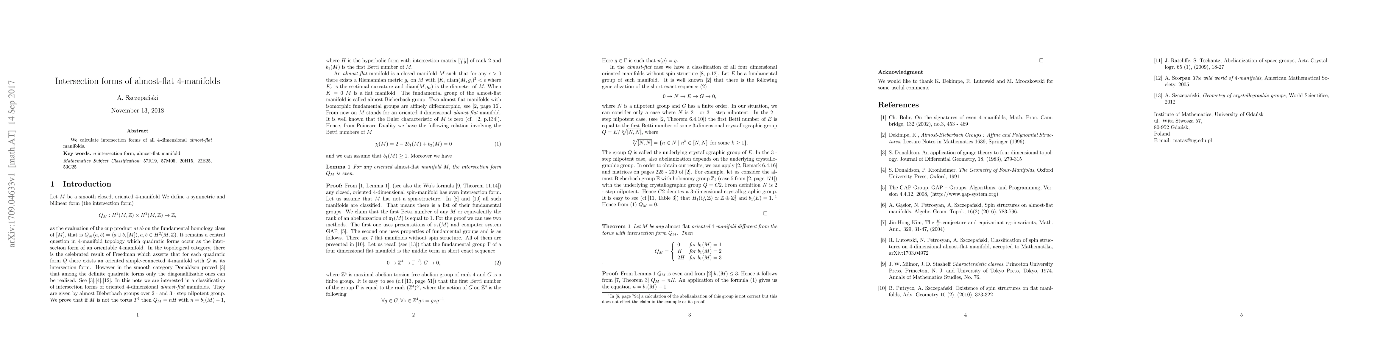The paper presents a detailed classification of almost-flat 4-manifold intersection forms, utilizing almost-Bieberbach groups and computational tools like GAP.