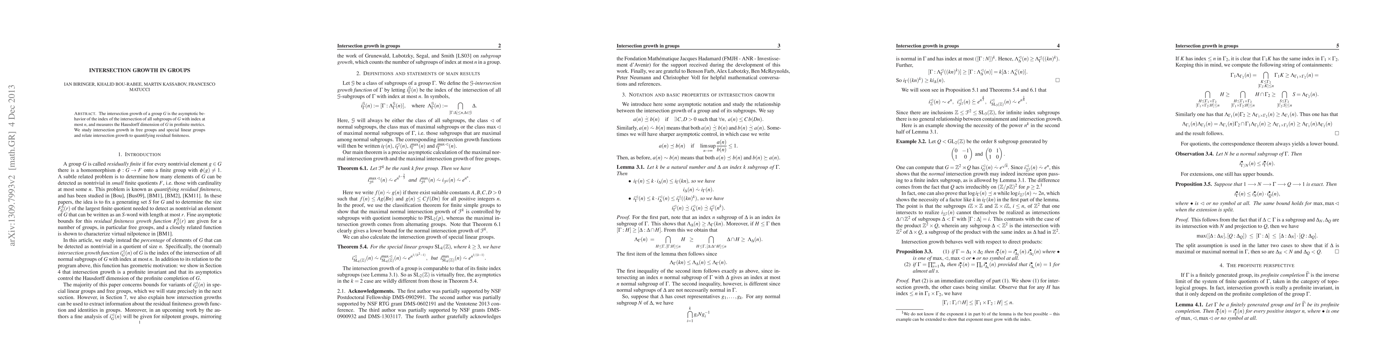 The intersection growth of a group $G$ is the asymptotic behavior of the index of the intersection of all subgroups of $G$ with index at most $n$, and measures the Hausdorff dimension of $G$ in profinite metrics. We study intersection growth in free groups and special linear groups and relate intersection growth to quantifying residual finiteness.