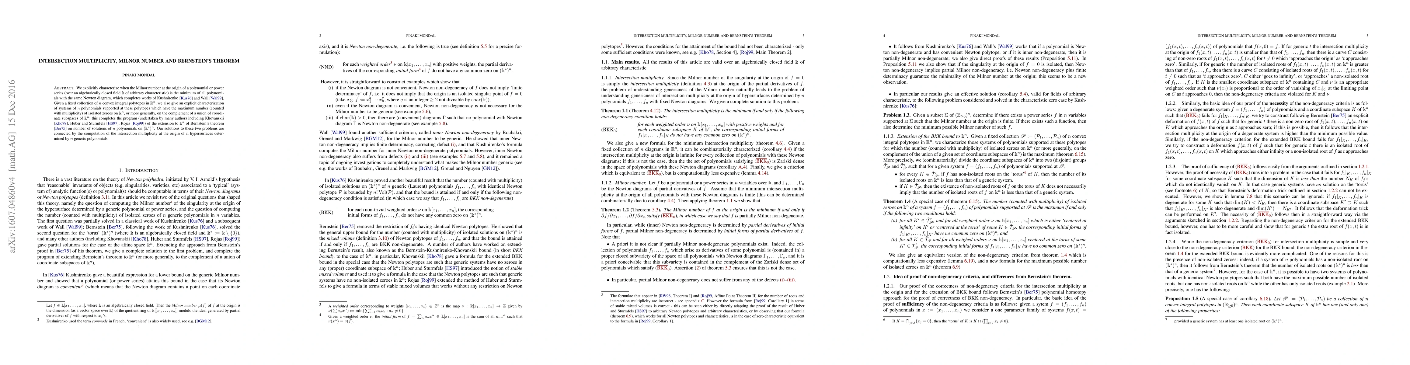 The paper provides explicit conditions for minimality of Milnor numbers and extends Bernstein's theorem, contributing foundational results to the study of polynomial systems.