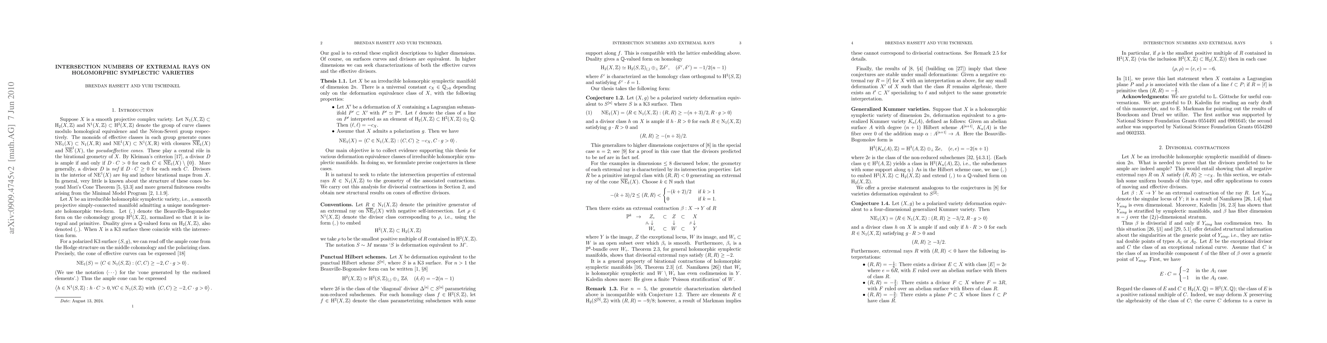 This paper establishes a framework for understanding the intersection properties of extremal rays in holomorphic symplectic varieties, asserting that these rays associated with Lagrangian subspaces dictate the behavior of the cone of curves. It applies this theory to examples such as Hilbert schemes on K3 surfaces and generalized Kummer varieties, providing supporting evidence for the proposed conjectures.