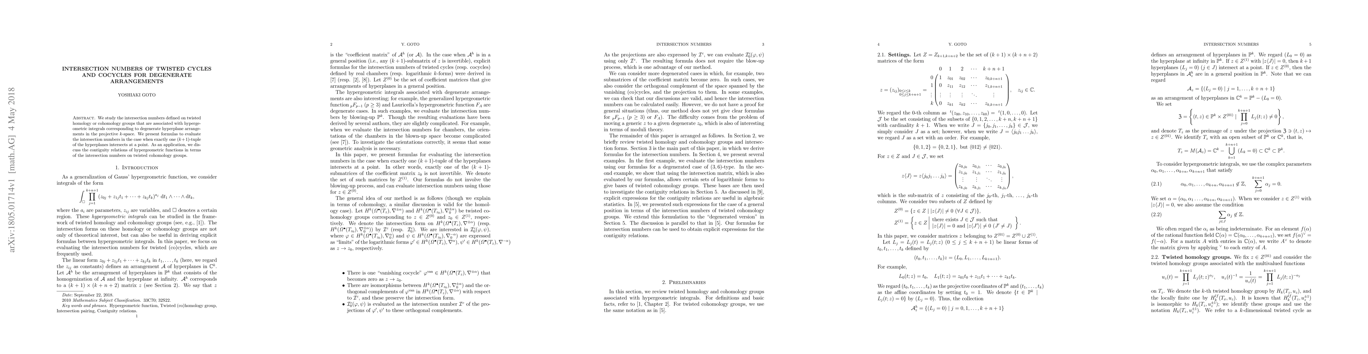 This paper investigates intersection numbers in twisted homology/cohomology linked to hypergeometric integrals for degenerate hyperplane arrangements in projective space, providing formulas for cases where exactly one $(k+1)$-tuple of hyperplanes intersects. It also explores the application of these intersection numbers to hypergeometric function contiguity relations.