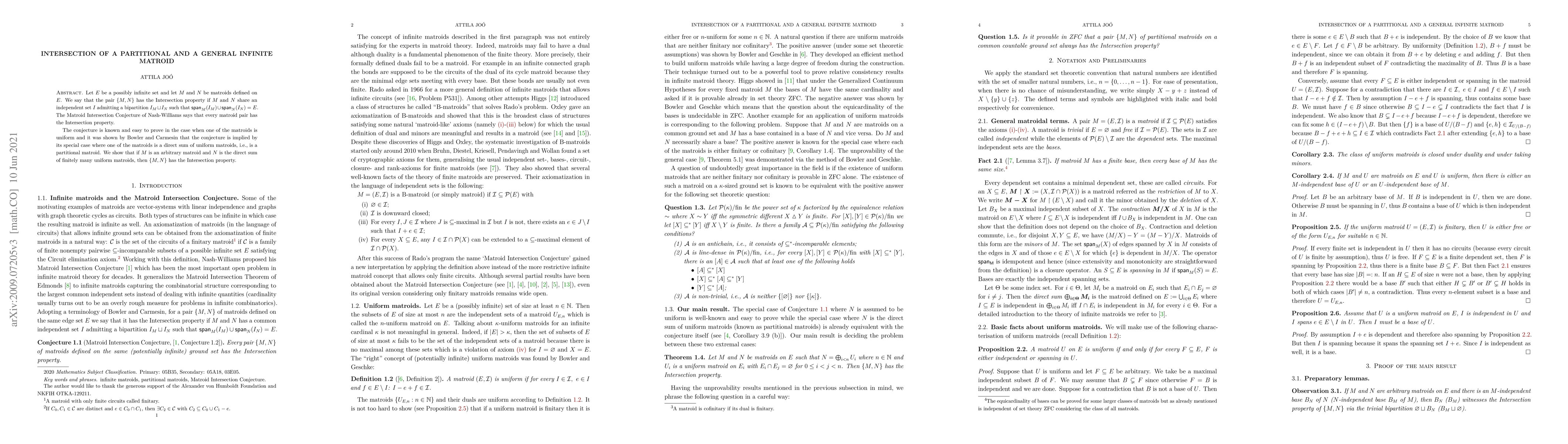 Let $ E $ be a possibly infinite set and let $ M $ and $ N $ be matroids defined on $ E $. We say that the pair $ \{ M,N \} $ has the Intersection property if $ M $ and $ N $ share an independent set $ I $ admitting a bipartition $ I_M\sqcup I_N $ such that $ \mathsf{span}_M(I_M)\cup \mathsf{span}_N(I_N)=E $. The Matroid Intersection Conjecture of Nash-Williams says that every matroid pair has the Intersection property. The conjecture is known and easy to prove in the case when one of the matroids is uniform and it was shown by Bowler and Carmesin that the conjecture is implied by its special case where one of the matroids is a direct sum of uniform matroids, i.e., is a partitional matroid. We show that if $ M $ is an arbitrary matroid and $ N $ is the direct sum of finitely many uniform matroids, then $ \{ M, N \} $ has the Intersection property.
