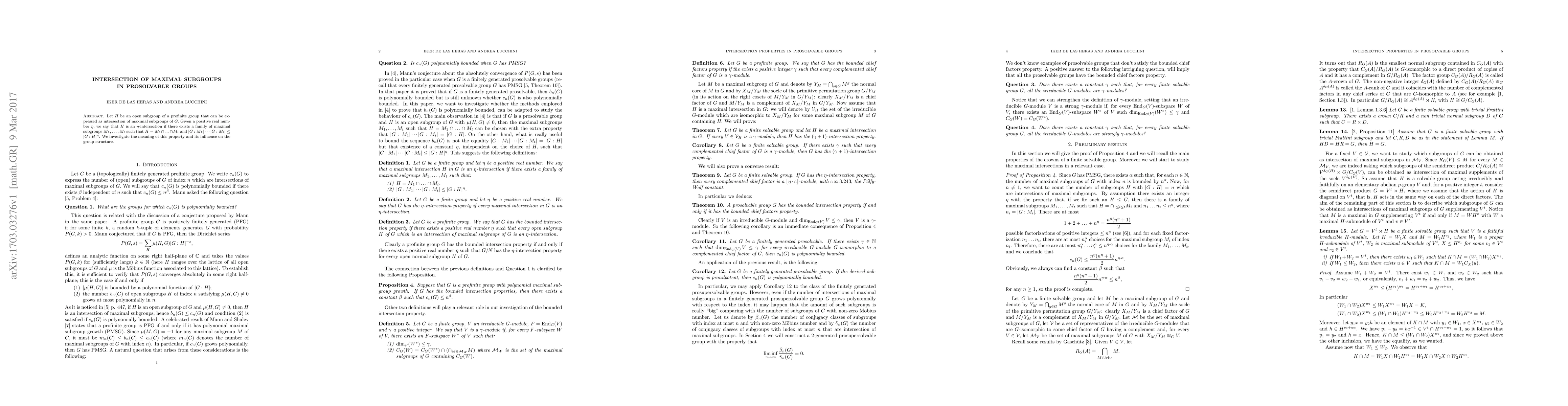 Let $H$ be an open subgroup of a profinite group that can be expressed as intersection of maximal subgroups of $G.$ Given a positive real number $\eta,$ we say that $H$ is an $\eta$-intersection if there exists a family of maximal subgroups $M_1,\ldots,M_t$ such that $H=M_1\cap\ldots\cap M_t$ and $|G:M_1|\cdots|G:M_t|\le |G:H|^{\eta}$. We investigate the meaning of this property and its influence on the group structure.