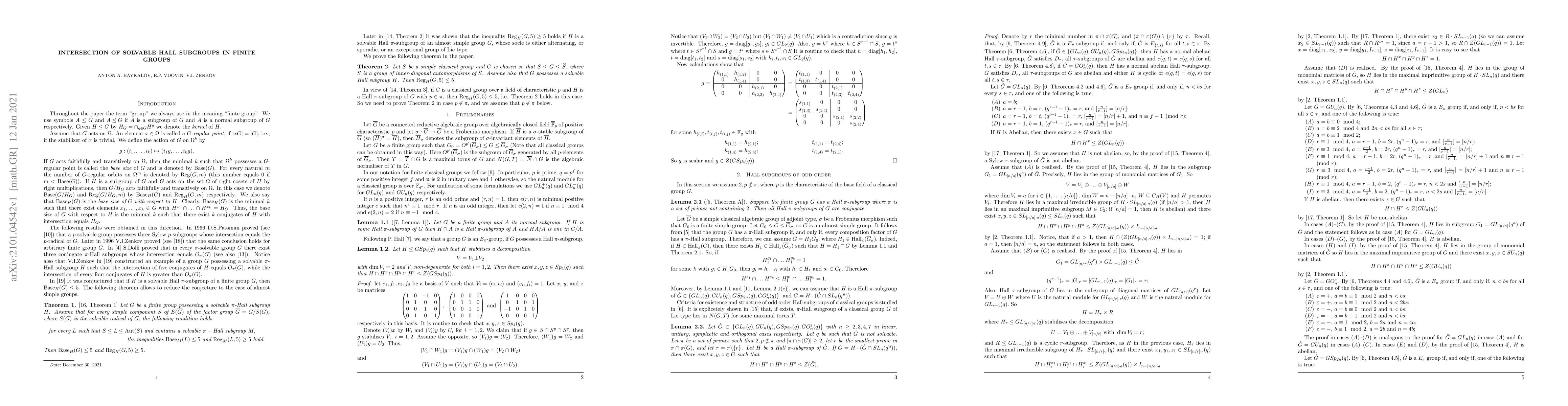 In this paper we show that if S is a simple classical group, a group G is contained in inner-diagonal automorphisms of S and contains S, and H is a solvable Hall subgroup of G, then there exists five conjugates of H, whose intersection is trivial.
