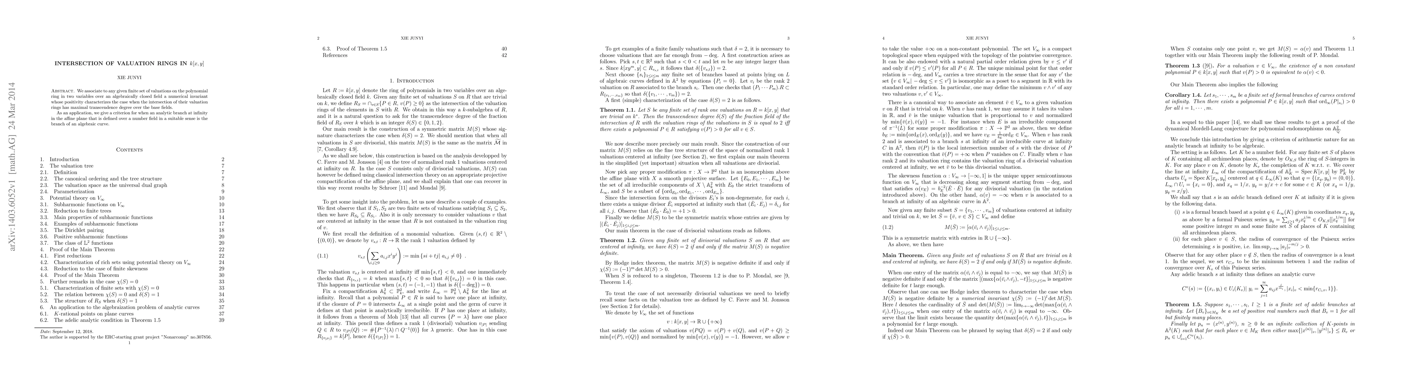 Researchers developed a method to analyze the intersection of valuation rings in polynomial equations over an algebraically closed field, leading to a criterion for identifying analytic branches at infinity.