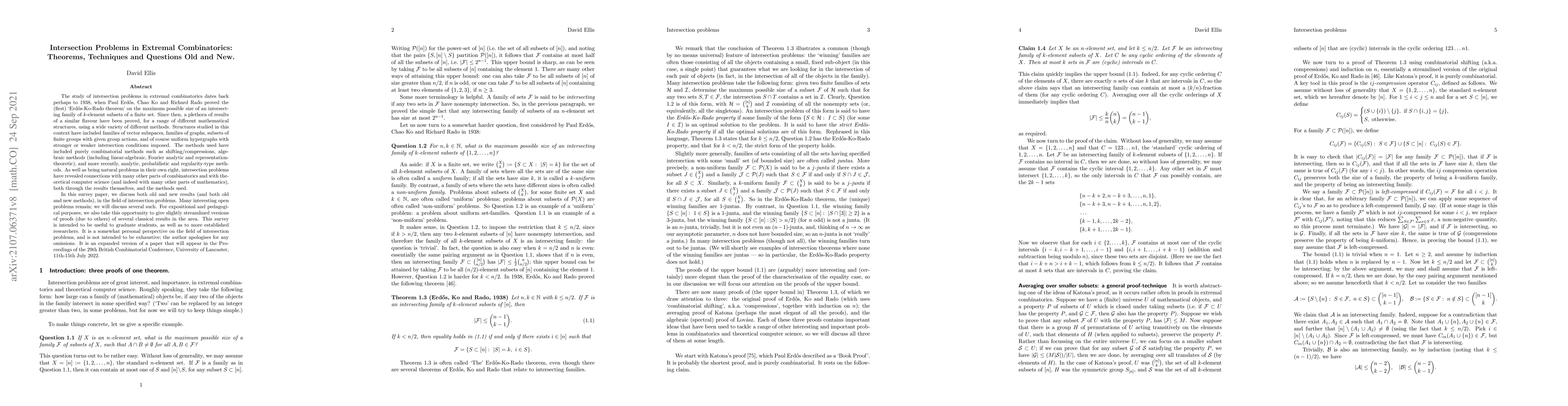 This survey paper explores intersection problems in Extremal Combinatorics, discussing old and new results, methods, and open problems, with connections to other areas of mathematics and computer science.