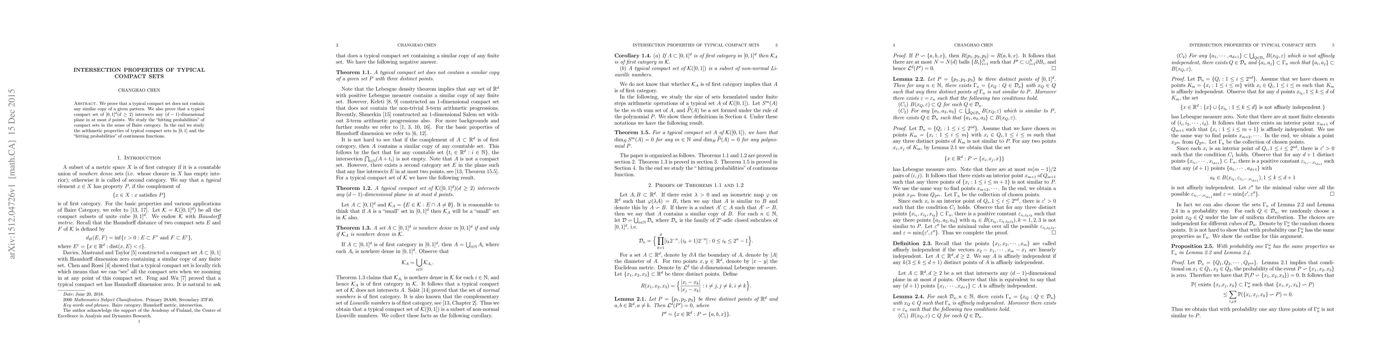 A study on compact sets in high dimensions reveals that typical sets do not contain similar copies of patterns and intersect planes in a limited number of points, with implications for the distribution of arithmetic properties and hitting probabilities.