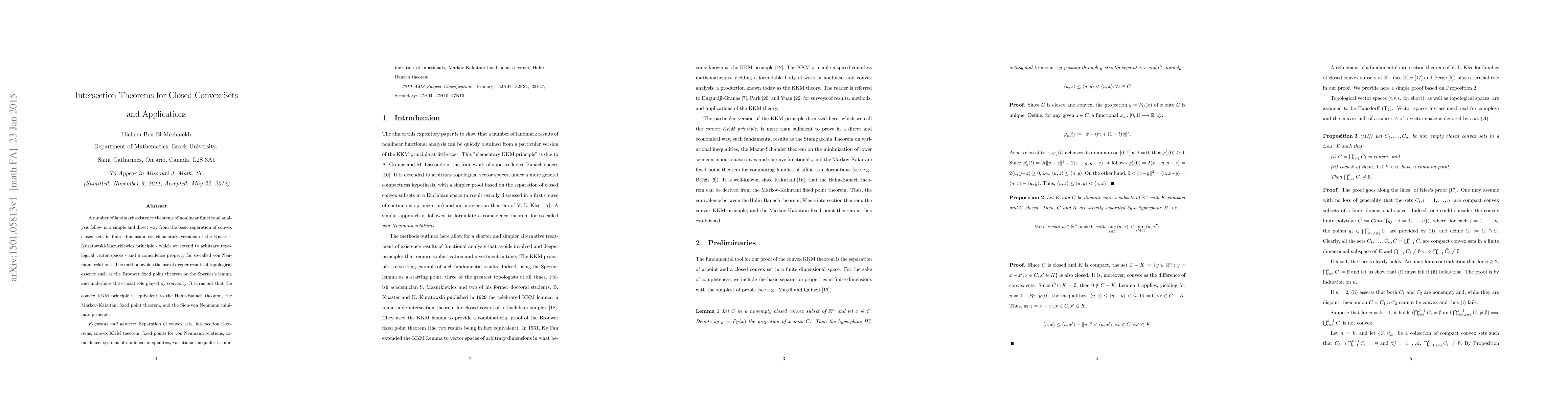 A number of landmark existence theorems of nonlinear functional analysis follow in a simple and direct way from the basic separation of convex closed sets in finite dimension via elementary versions of the Knaster-Kuratowski-Mazurkiewicz principle - which we extend to arbitrary topological vector spaces - and a coincidence property for so-called von Neumann relations. The method avoids the use of deeper results of topological essence such as the Brouwer fixed point theorem or the Sperner's lemma and underlines the crucial role played by convexity. It turns out that the convex KKM principle is equivalent to the Hahn-Banach theorem, the Markov-Kakutani fixed point theorem, and the Sion-von Neumann minimax principle.