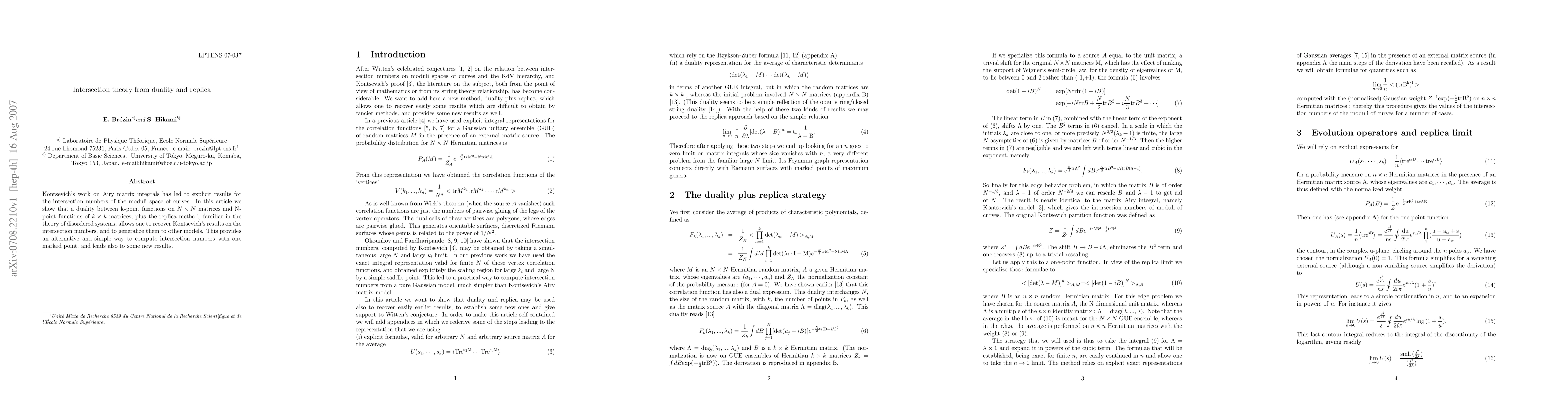 Researchers used duality theory and replica method to simplify computation of intersection numbers in algebraic geometry, recovering known results and generalizing them to other models.
