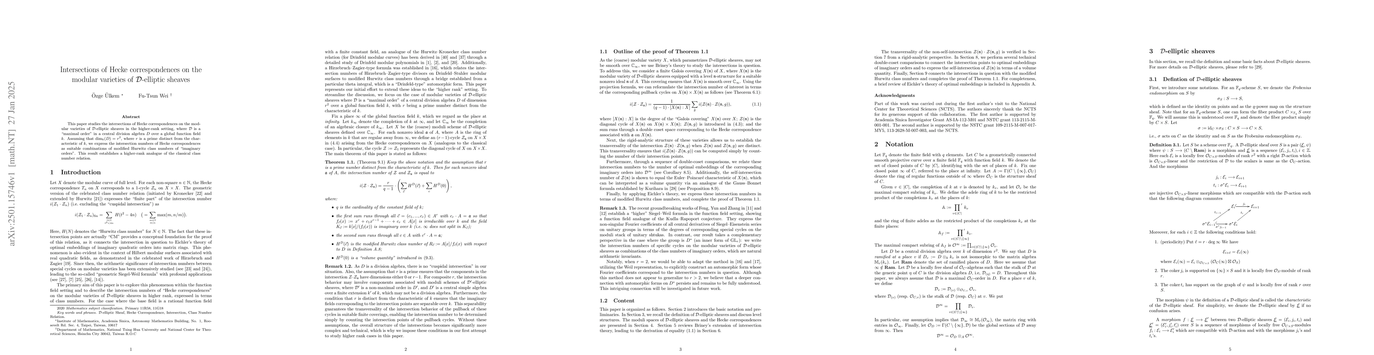 The work extends known classical results to higher-rank modular varieties of $\mathcal{D}$-elliptic sheaves, introducing a new perspective on the interplay between Hecke correspondences and modified Hurwitz class numbers.