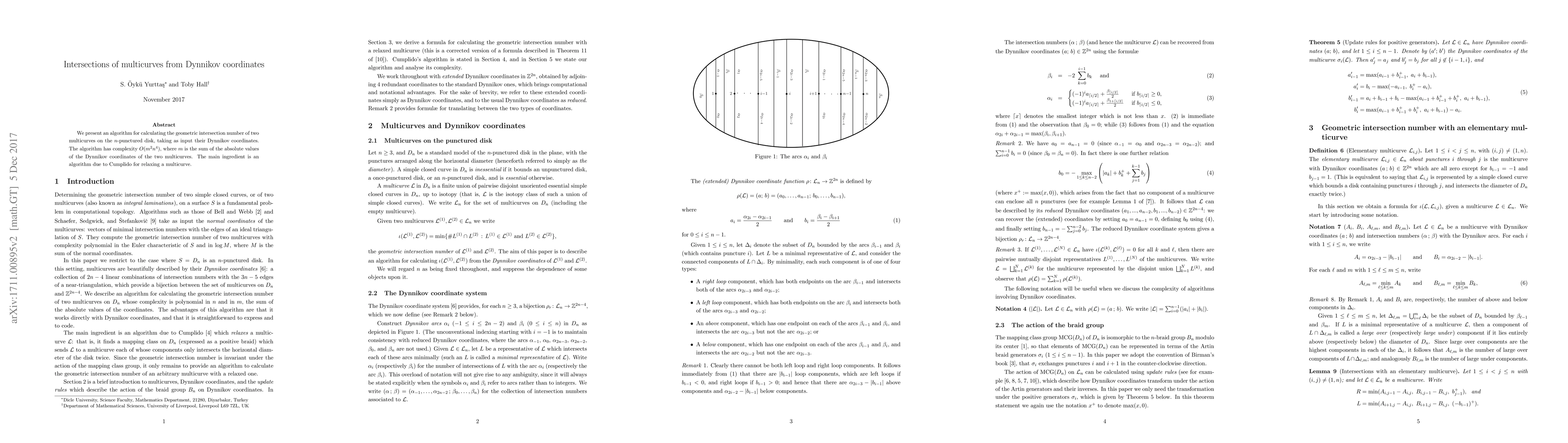 We present an algorithm for calculating the geometric intersection number of two multicurves on the $n$-punctured disk, taking as input their Dynnikov coordinates. The algorithm has complexity $O(m^2n^4)$, where $m$ is the sum of the absolute values of the Dynnikov coordinates of the two multicurves. The main ingredient is an algorithm due to Cumplido for relaxing a multicurve.