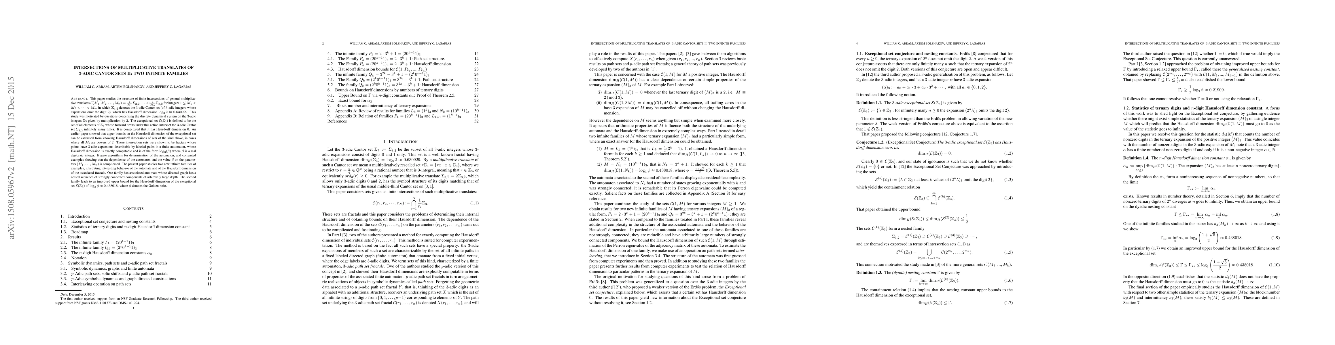 This paper investigates the structure of finite intersections of multiplicative translates of the $3$-adic Cantor set, revealing two infinite families of fractals. It improves the upper bound for the Hausdorff dimension of the exceptional set in the dynamical system of multiplication by $2$ on $\mathbb{Z}_3$ to $\log_3 \phi$, where $\phi$ is the Golden ratio.