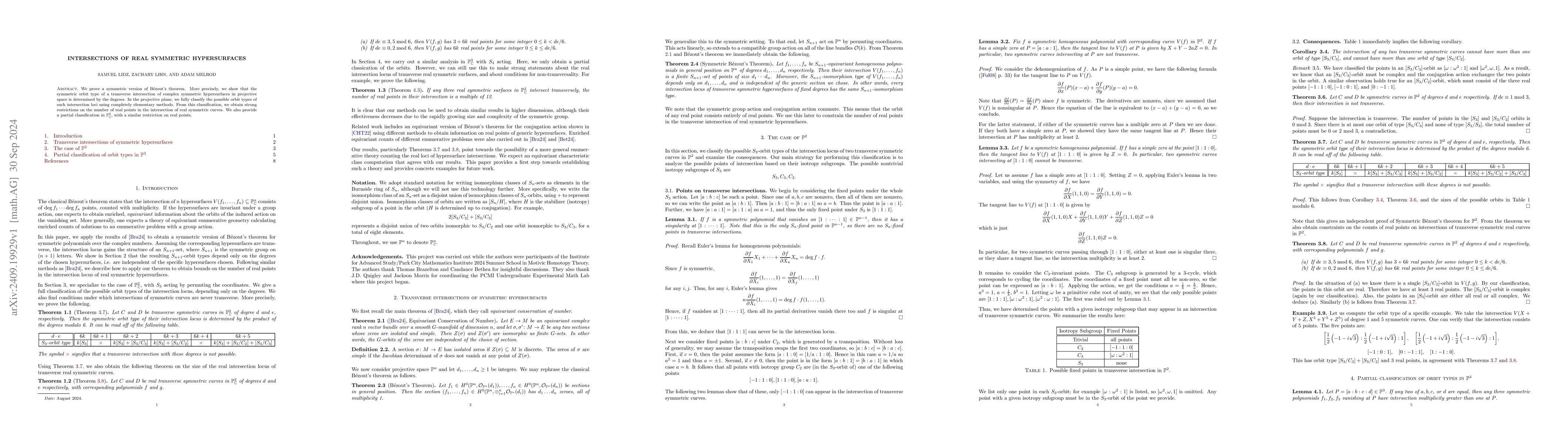 This paper proves a symmetric version of B\'ezout's theorem, demonstrating that the intersection of complex symmetric hypersurfaces in projective space is determined by their degrees. It fully classifies the orbit types of such intersections in the projective plane and provides partial classification in $\mathbb{P}^3_{\mathbb{C}}$, leading to restrictions on the number of real points in intersections of real symmetric curves.