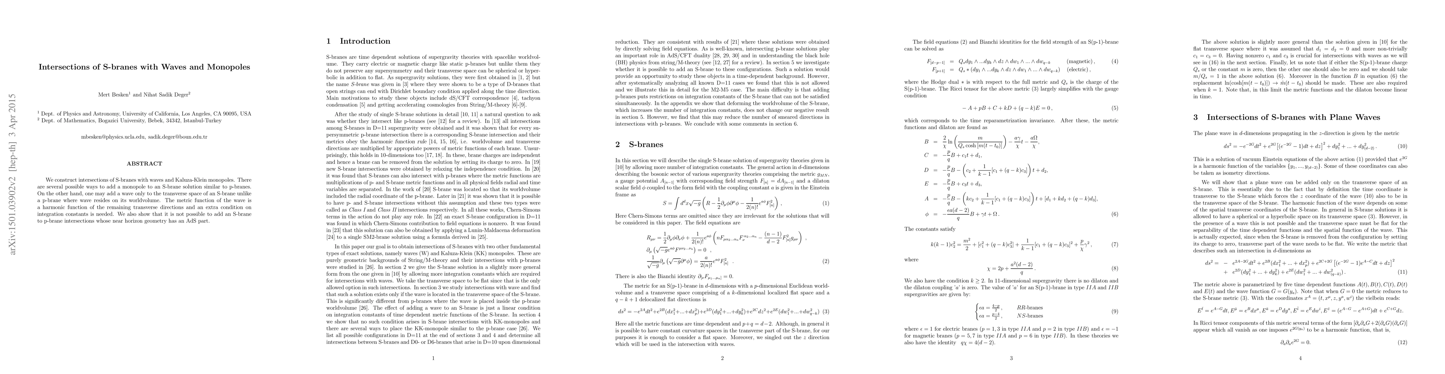 Two-Line Summary: This paper explores the intersections of S-branes with waves and Kaluza-Klein monopoles, revealing distinct methods for incorporating monopoles akin to p-branes and waves restricted to S-brane's transverse space. It concludes that S-branes cannot intersect with p-branes where the near horizon geometry includes an AdS part.