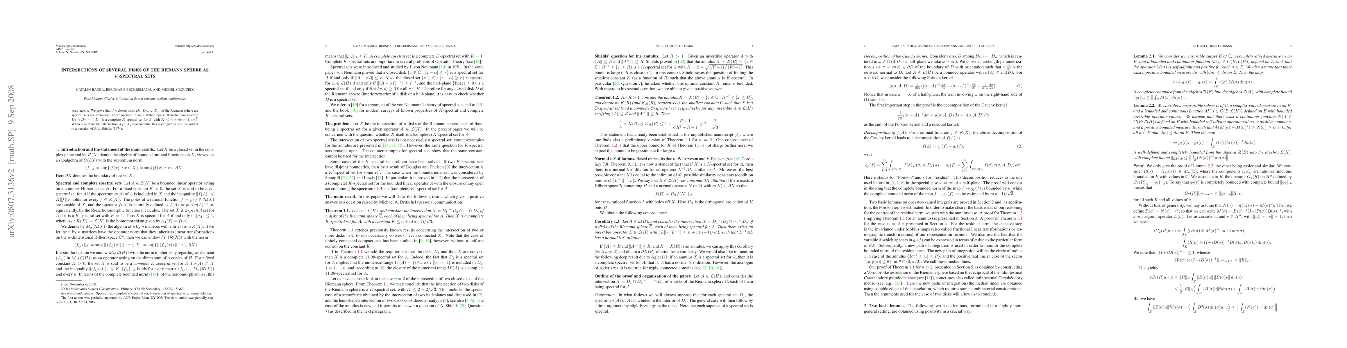 This paper proves that the intersection of $n$ closed disks on the Riemann sphere, which are spectral sets for a bounded linear operator $A$, forms a complete $K$-spectral set for $A$ with $K\leq n+n(n-1)/\sqrt3$. For $n=2$, this resolves a question posed by A.L. Shields in 1974 regarding the spectral properties of intersecting annuli.