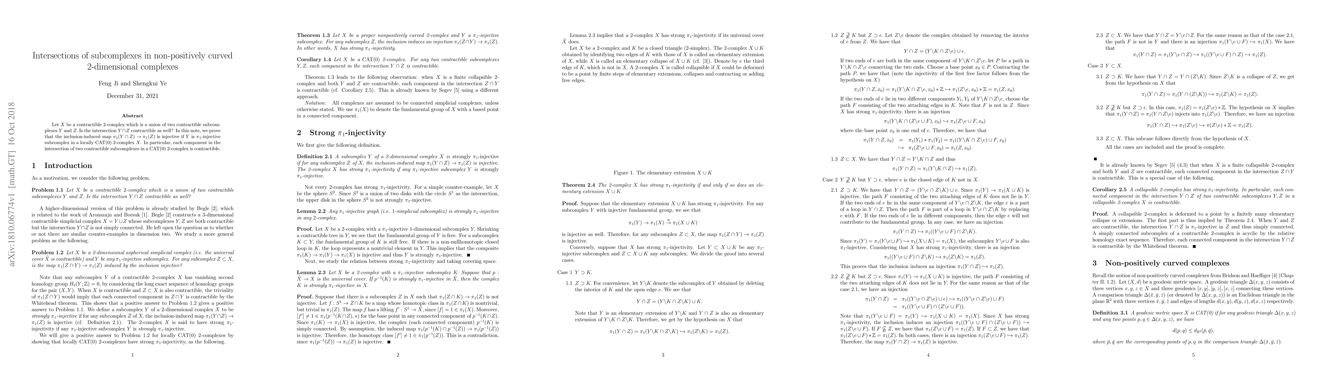 Let $X$ be a contractible $2$-complex which is a union of two contractible subcomplexes $Y$ and $Z.$ Is the intersection $Y\cap Z$ contractible as well? In this note, we prove that the inclusion-induced map $\pi _{1}(Y\cap Z)\rightarrow \pi _{1}(Z)$ is injective if $Y$ is $\pi _{1}$-injective subcomplex in a locally CAT(0) 2-complex $X$. In particular, each component in the intersection of two contractible subcomplexes in a CAT(0) 2-complex is contractible.
