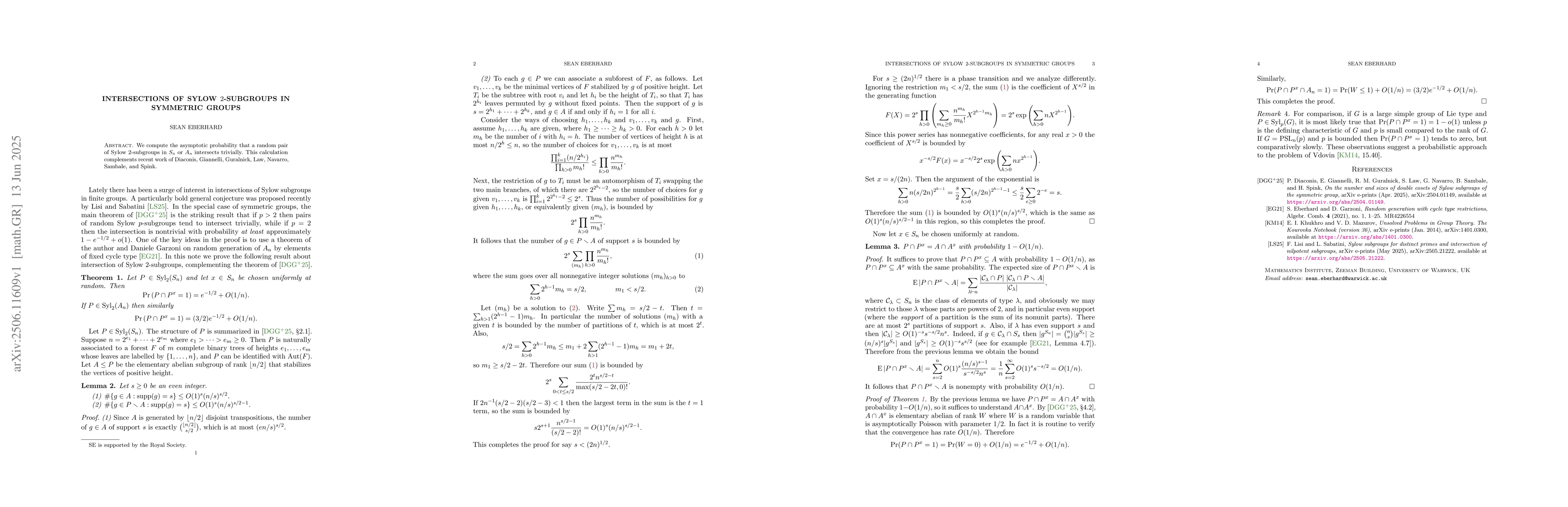 We compute the asymptotic probability that a random pair of Sylow 2-subgroups in $S_n$ or $A_n$ intersects trivially. This calculation complements recent work of Diaconis, Giannelli, Guralnick, Law, Navarro, Sambale, and Spink (see arXiv:2504.01149).