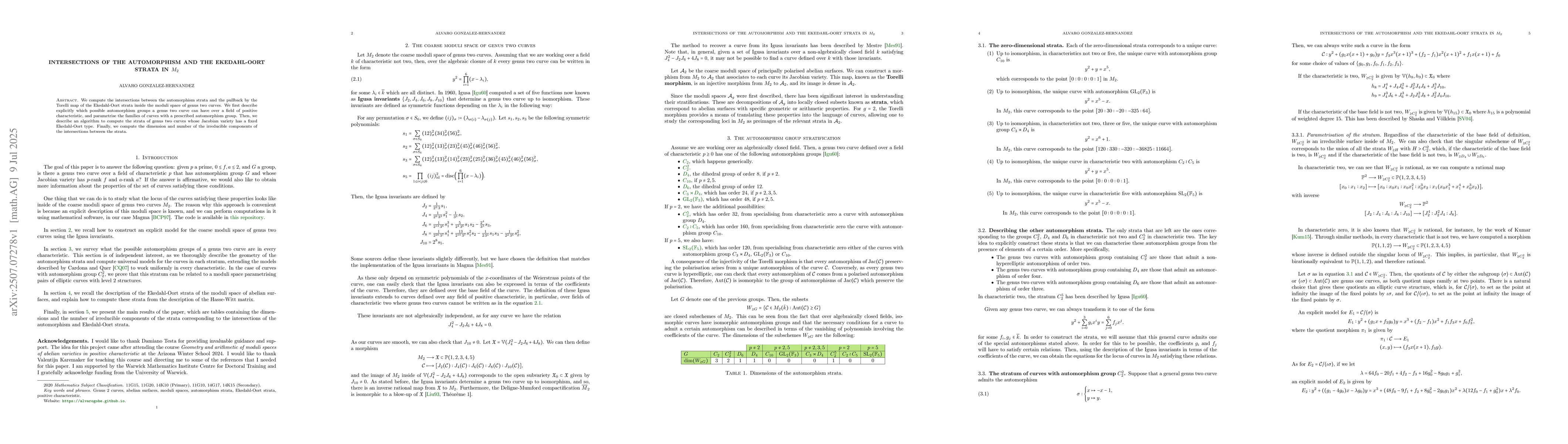 We compute the intersections between the automorphism strata and the pullback by the Torelli map of the Ekedahl-Oort strata inside the moduli space of genus two curves. We first describe explicitly which possible automorphism groups a genus two curve can have over a field of positive characteristic, and parametrise the families of curves with a prescribed automorphism group. Then, we describe an algorithm to compute the strata of genus two curves whose Jacobian variety has a fixed Ekedahl-Oort type. Finally, we compute the dimension and number of irreducible components of the intersections between the strata.