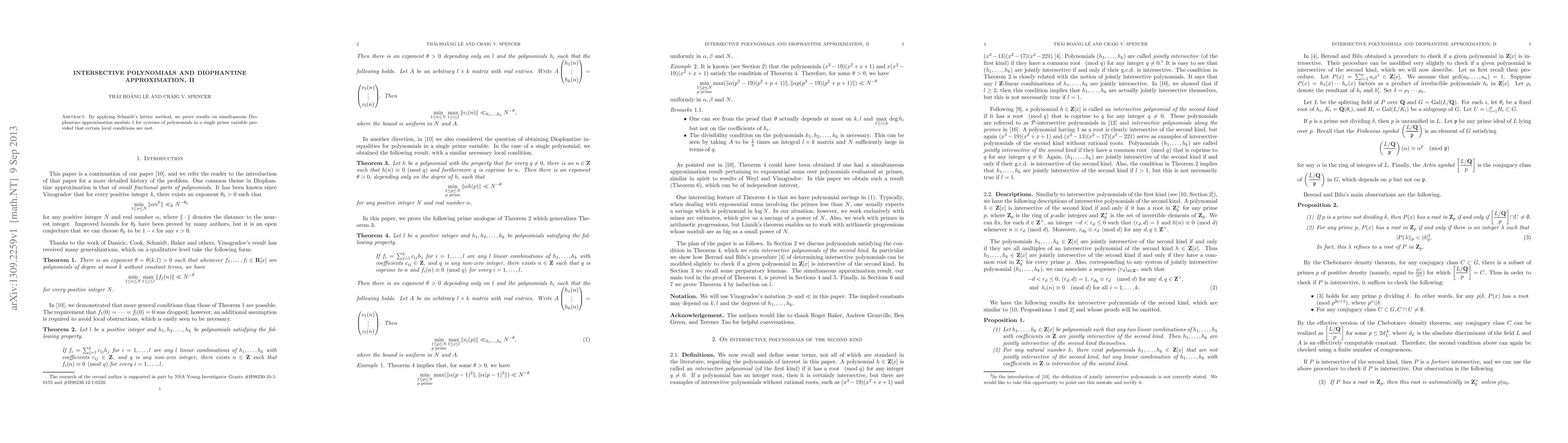 Summary: This paper utilizes Schmidt's lattice method to establish results on simultaneous Diophantine approximation modulo 1 for systems of intersective polynomials in a single prime variable, contingent on fulfilling specific local conditions.