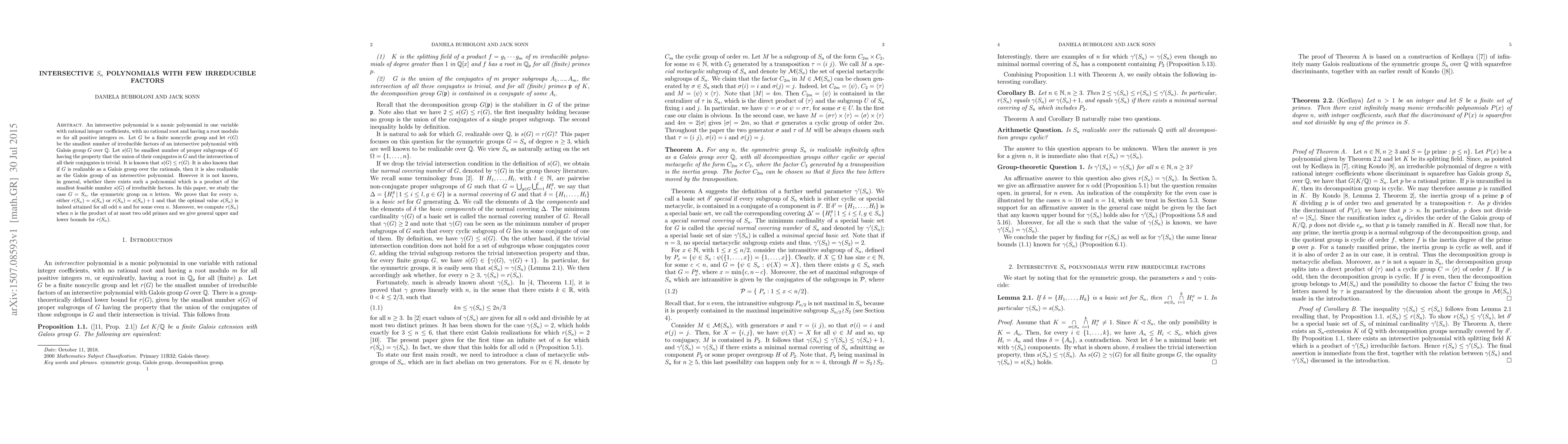 This paper explores intersective polynomials with Galois group $S_n$, proving that for every $n$, $r(S_n)$ equals either $s(S_n)$ or $s(S_n)+1$, with $s(S_n)$ achieved for all odd $n$ and some even $n$. It also provides bounds for $r(S_n)$ when $n$ is the product of at most two odd primes.