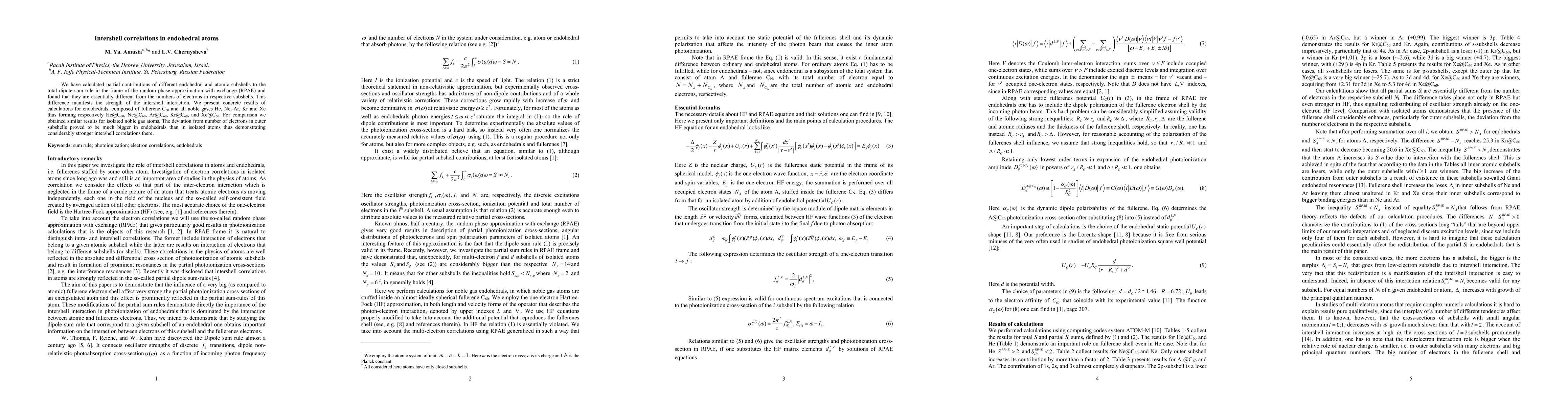 We have calculated partial contributions of different endohedral and atomic subshells to the total dipole sum rule in the frame of the random phase approximation with exchange (RPAE) and found that they are essentially different from the numbers of electrons in respective subshells. This difference manifests the strength of the intershell interaction. We present concrete results of calculations for endohedrals, composed of fullerene C60 and all noble gases He, Ne, Ar, Kr and Xe thus forming respectively He@C60, Ne@C60, Ar@C60, Kr@C60, and Xe@C60. For comparison we obtained similar results for isolated noble gas atoms. The deviation from number of electrons in outer subshells proved to be much bigger in endohedrals than in isolated atoms thus demonstrating considerably stronger intershell correlations there.
