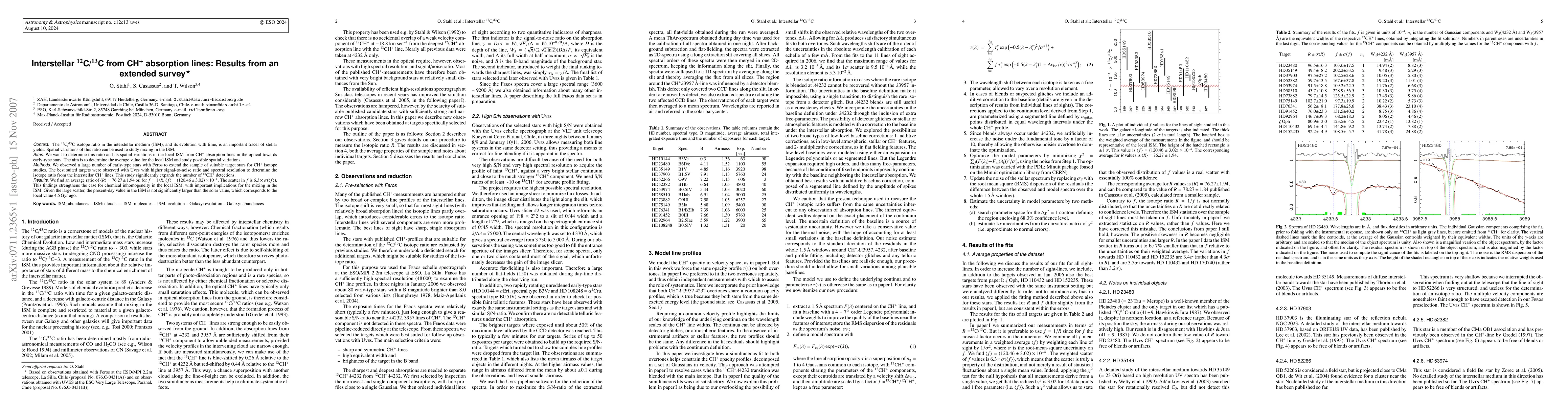 for CH+ isotope studies. The best suited targets were observed with Uves with