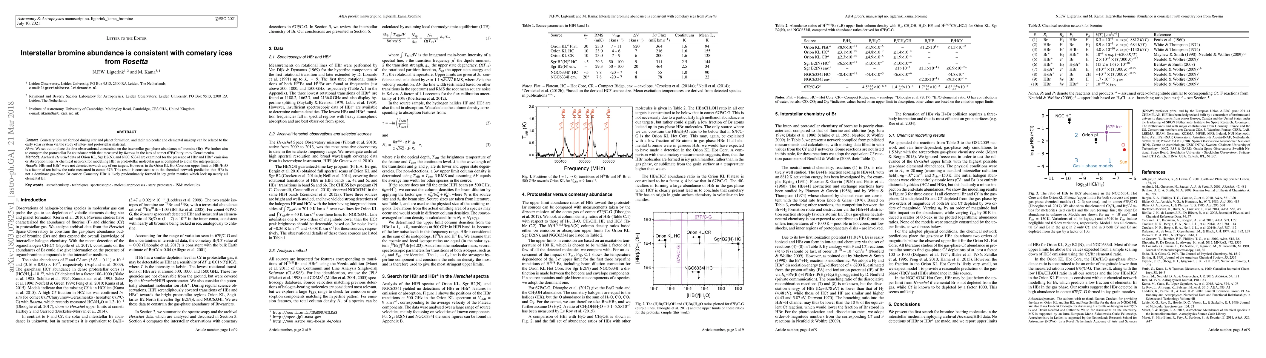The study investigates the interstellar gas-phase abundance of bromine (Br) using archival Herschel data and finds no detection of HBr and HBr$^+$ in protostellar regions. The upper limit on HBr/H$_2$O in Orion KL is consistent with bromine being predominantly trapped in cometary ices, as observed by the Rosetta mission in comet 67P/Churyumov-Gerasimenko.