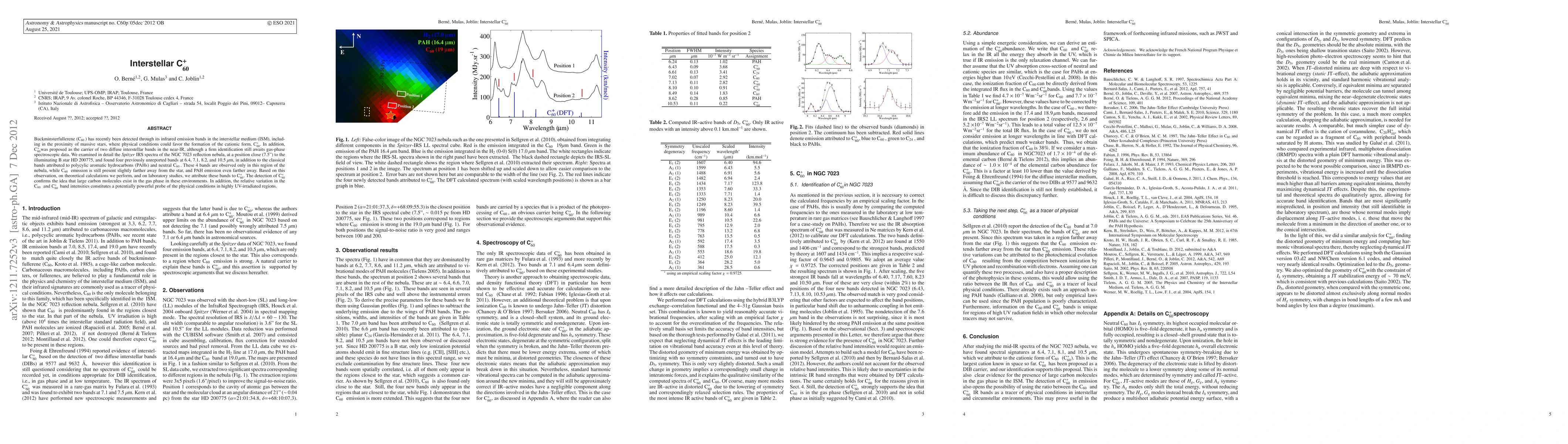 This paper reports the detection of cationic buckminsterfullerene (C60+) in the interstellar medium through new infrared emission bands observed in the NGC 7023 nebula near a massive star. The findings suggest that C60+ could be a carrier of certain diffuse interstellar bands and provide a new probe for studying physical conditions in highly UV-irradiated regions.