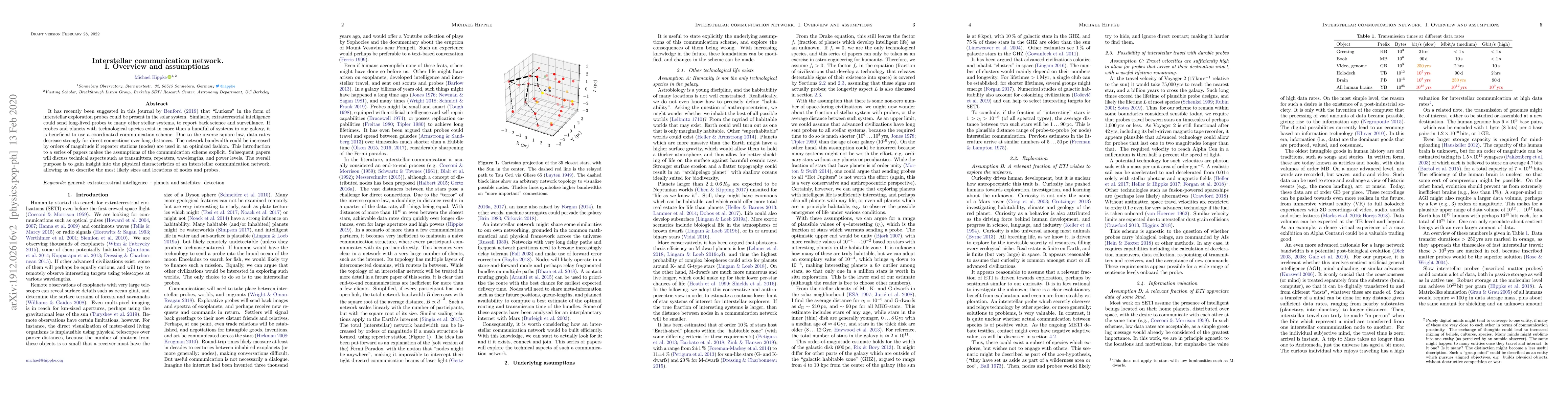 This paper introduces the concept of an interstellar communication network using long-lived probes and repeater stations to overcome the challenges of data transmission over vast distances. It outlines the assumptions for such a network and sets the stage for future discussions on technical details.