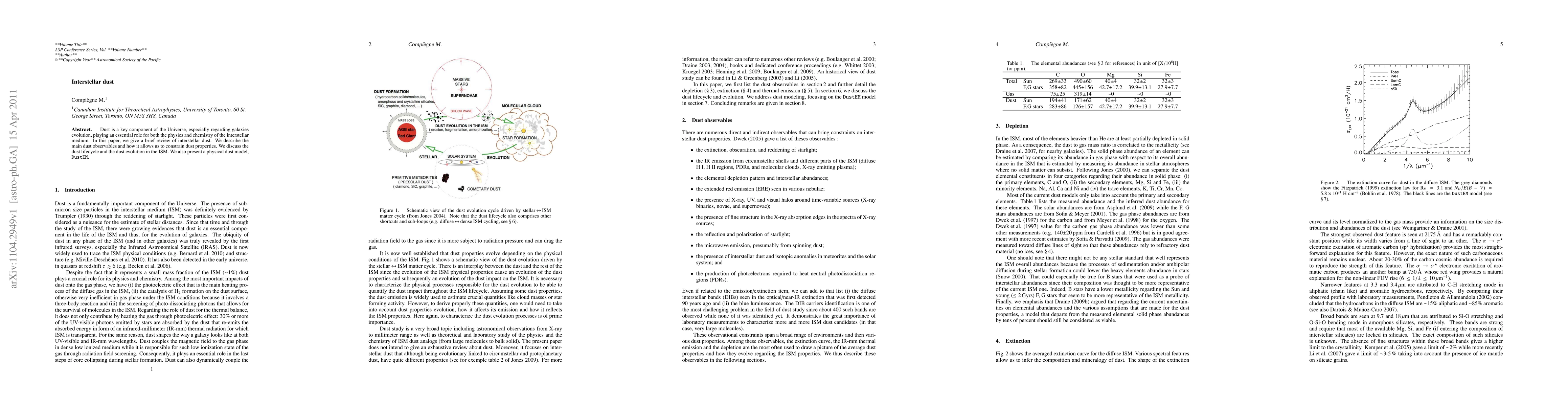 This paper provides a concise review of interstellar dust, detailing its key observables, lifecycle, and evolution within the interstellar medium. It introduces a new physical dust model, DustEM, to better understand dust properties and its role in galaxy evolution.