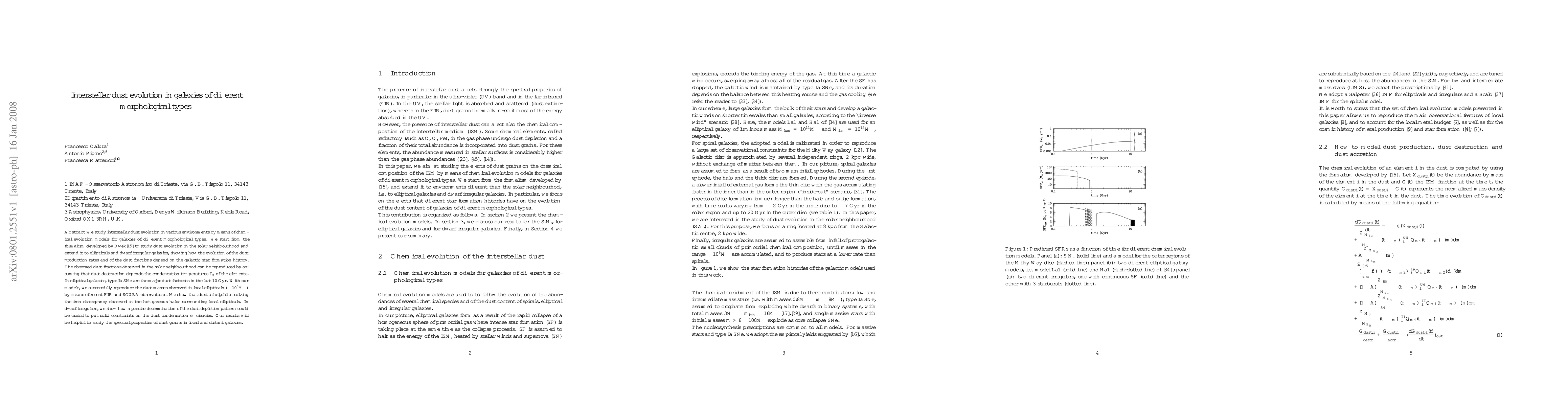 The development of a new semi-analytical model for chemical evolution in galaxies, which includes a detailed treatment of dust production.