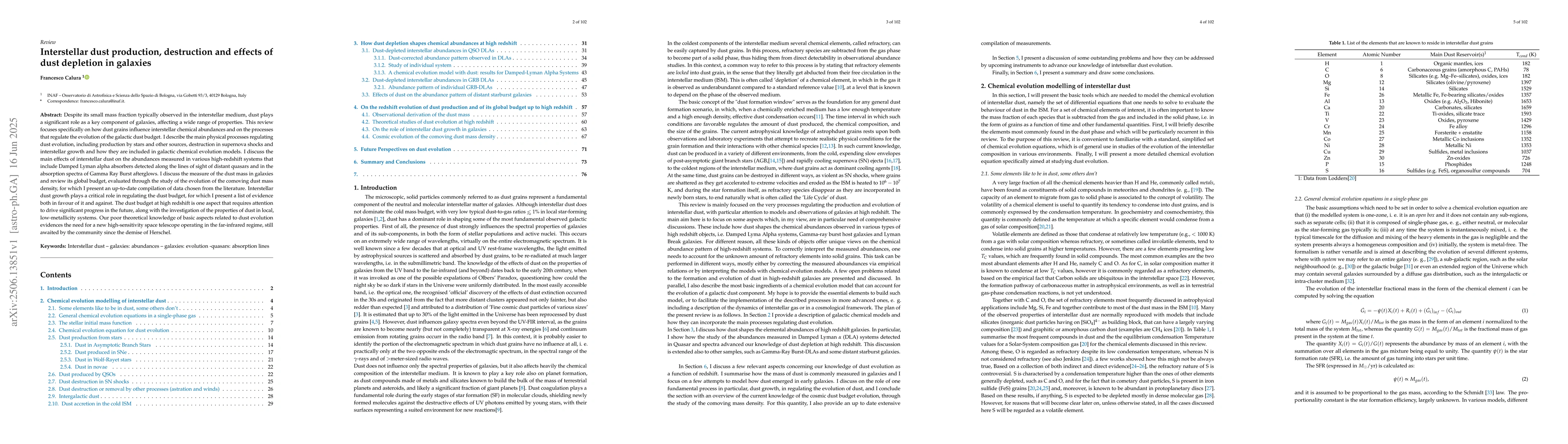 This review explores the crucial role of interstellar dust in galaxies, detailing its production by stars and other sources, destruction in supernova shocks, and interstellar growth. It highlights dust's impact on chemical abundances in high-redshift systems and the importance of dust mass measurements in galactic chemical evolution models. The paper emphasizes the need for advanced far-infrared observational tools to enhance our understanding of dust evolution, particularly at high redshift and in low-metallicity systems.