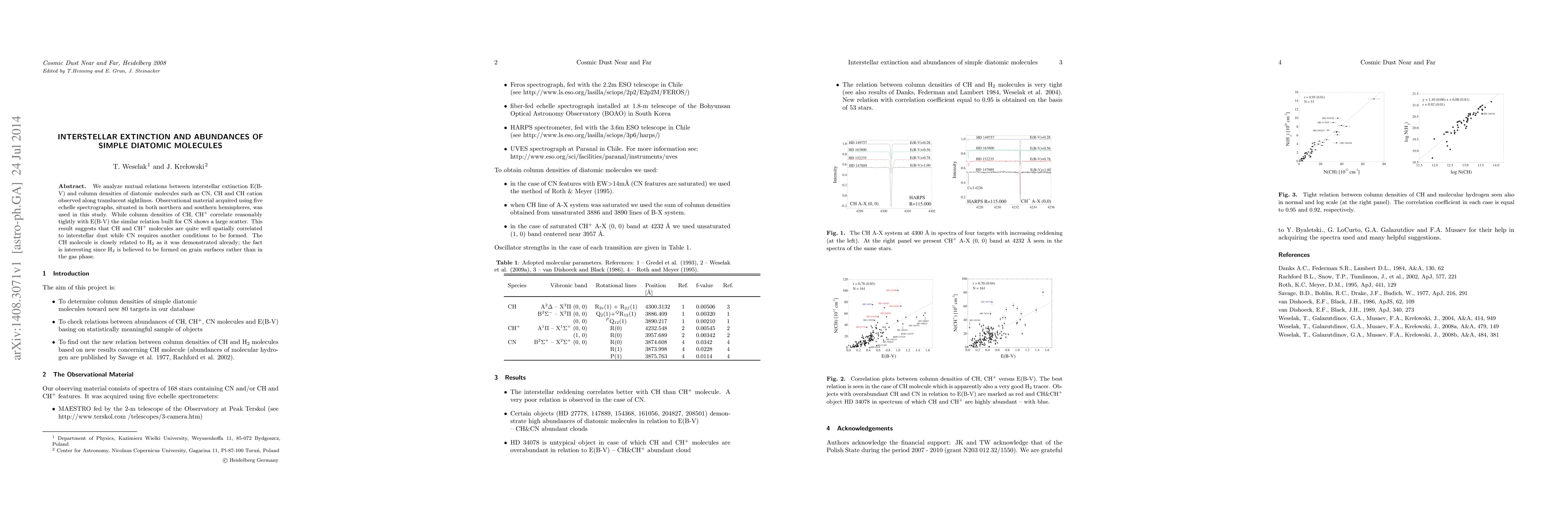 A study found that CH and CH+ molecules correlate well with interstellar dust, while CN's relation is less consistent, suggesting different formation mechanisms.