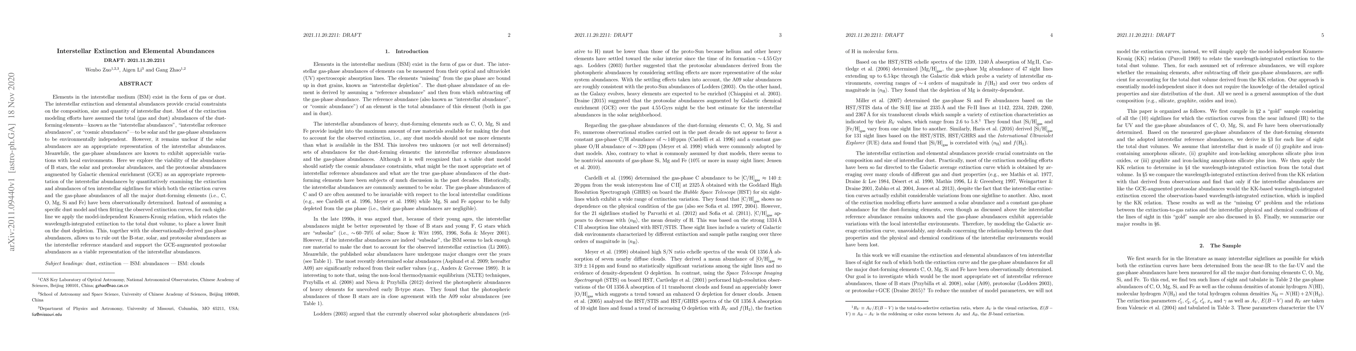 This research examines the suitability of different elemental abundances as a standard for interstellar extinction and elemental abundances, concluding that protosolar abundances augmented by Galactic chemical enrichment provide the most accurate representation. The study uses model-independent methods to analyze ten interstellar lines of sight, ruling out B-star, solar, and protosolar abundances.