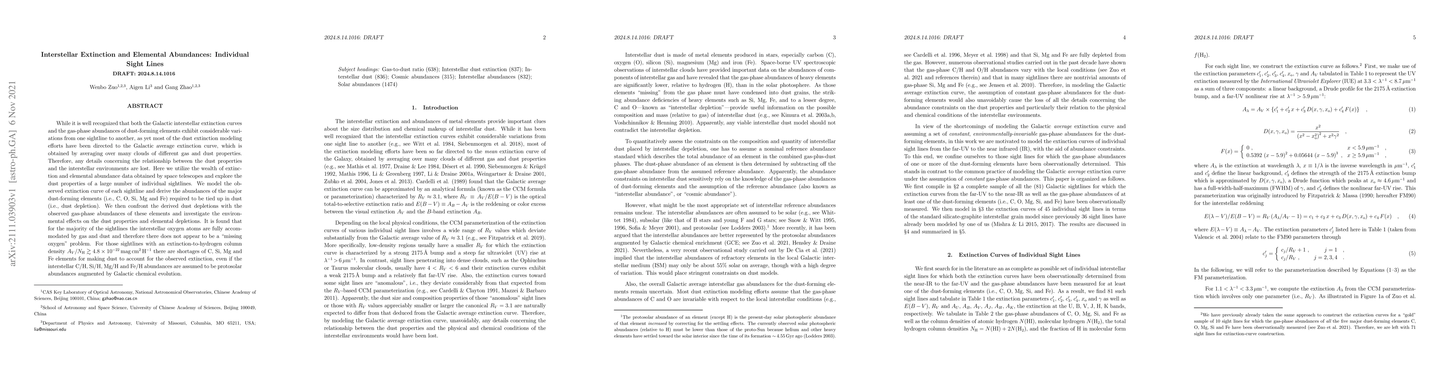 This paper investigates interstellar extinction and elemental abundances across individual sight lines, revealing significant variations in dust properties and elemental depletions compared to the Galactic average. It finds no "missing oxygen" problem but identifies shortages of C, Si, Mg, and Fe in sight lines with high extinction-to-hydrogen column density ratios.