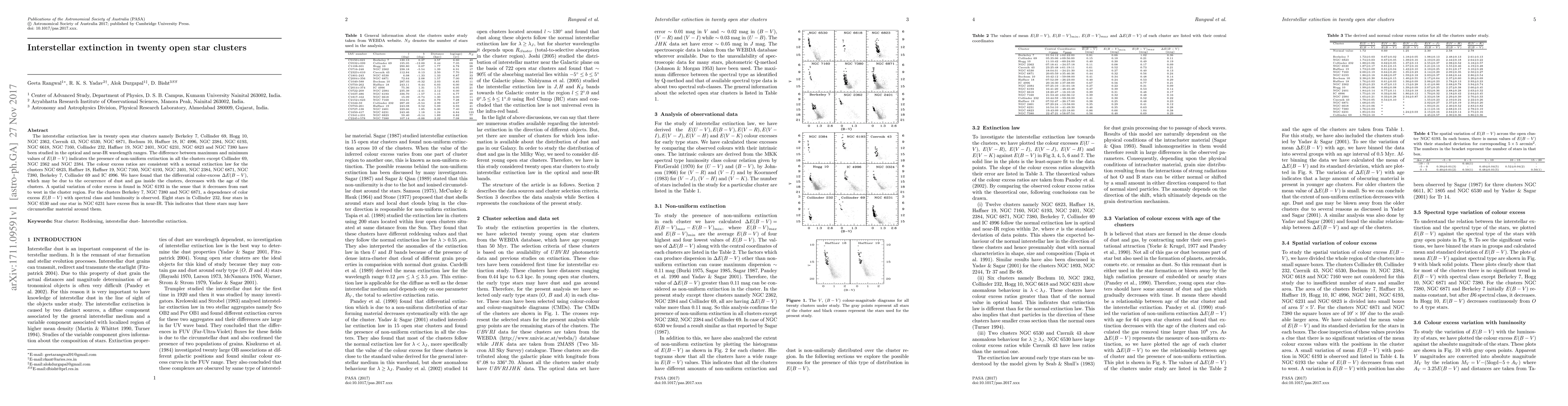 This study investigates interstellar extinction in twenty open star clusters across optical and near-IR wavelengths, revealing non-uniform extinction in most clusters. The research finds that differential colour-excess decreases with cluster age and identifies circumstellar material around some stars.