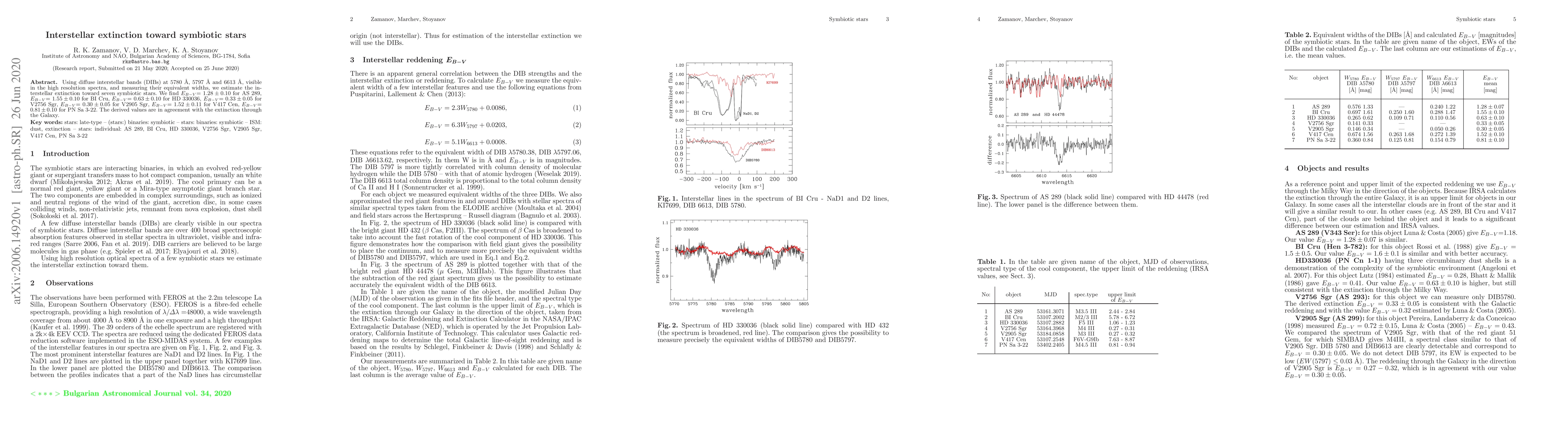 Researchers estimated interstellar extinction toward seven symbiotic stars using diffuse interstellar bands, finding values in agreement with Galactic extinction patterns.